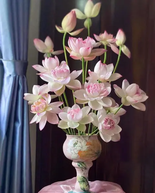 Bình sen trắng hoặc hồng phối cùng lá sen xanh
